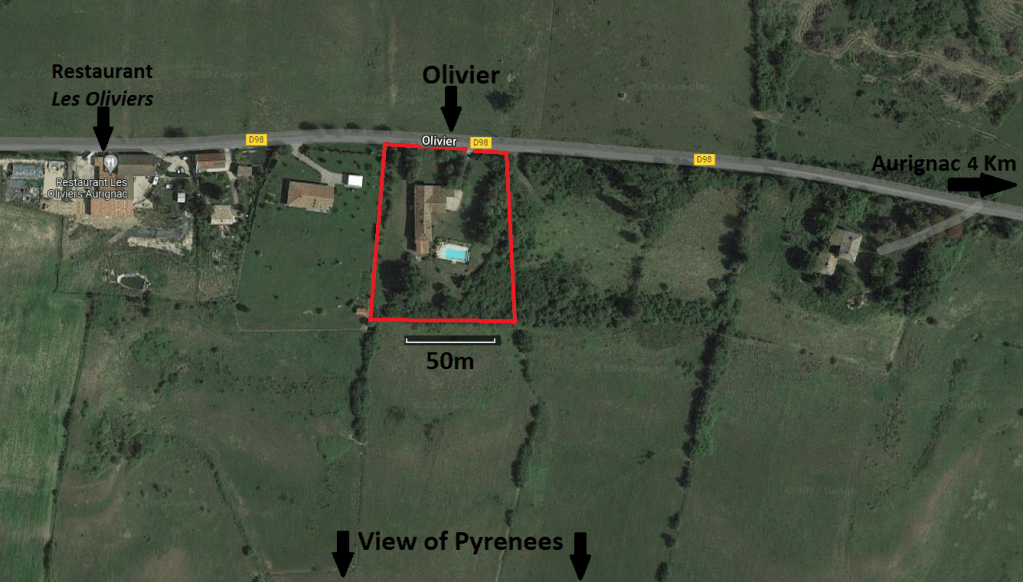 Olivier is on the D98 at 31420 Aurignac, Haute Garonne, France. Olivier is at map ref 43°13’59.7″N 0°50’04.6″E